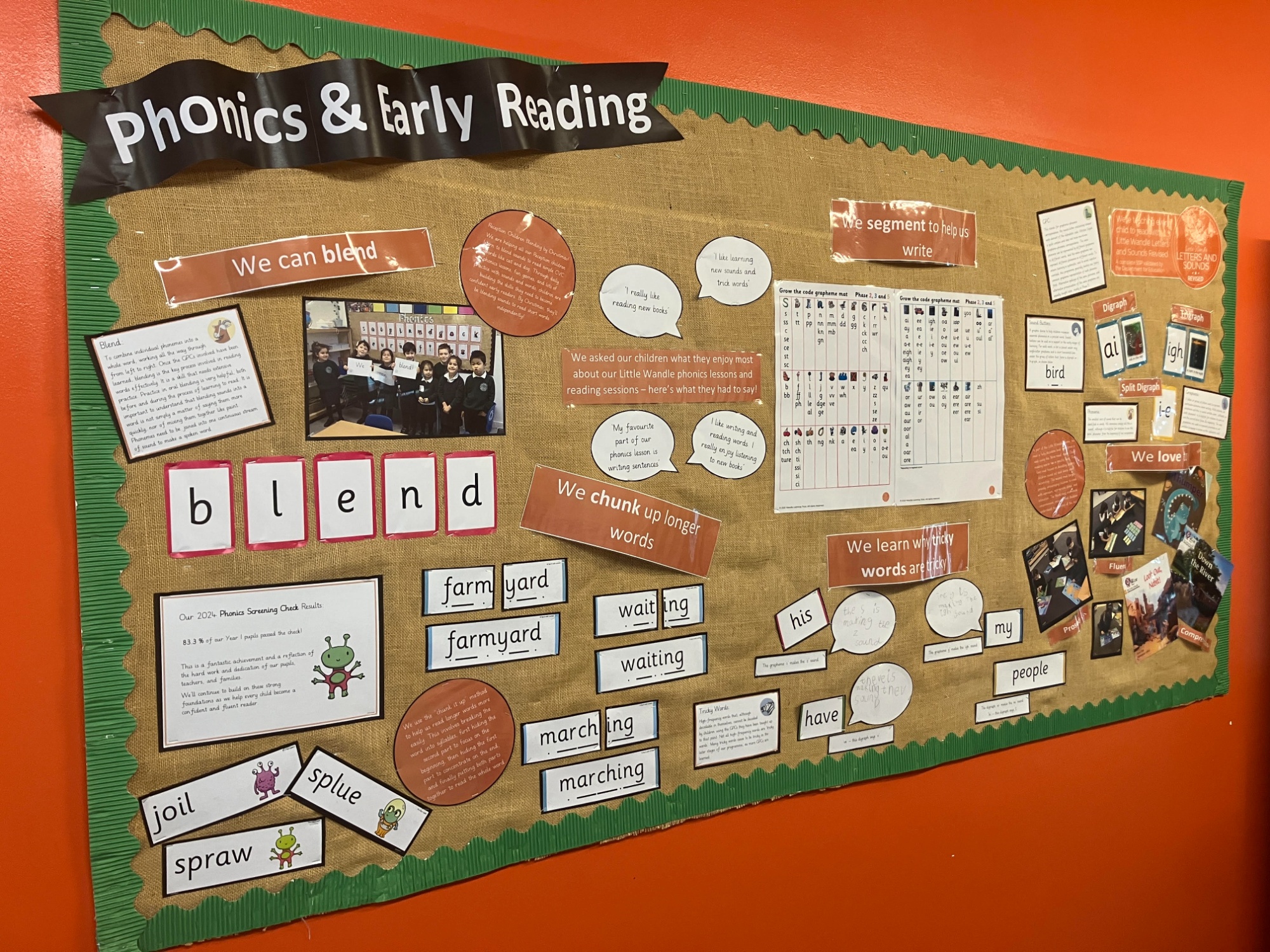 To ensure children become independent, confident readers at the earliest possible opportunity, we teach children the necessary phonics skills to enable them to decode and understand language as they start with us in Reception. We follow the Little Wandle Letters and Sounds Revised progression, which ensures children build on their growing knowledge of the alphabetic code, mastering phonics to read and spell as they move through school.